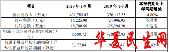 2020年1-9月,九号公司营业总收入为43.18亿元,同比增长14.80%;归属于母公司股东的净利润为8500.72万元,去年同期为-2.87亿元。