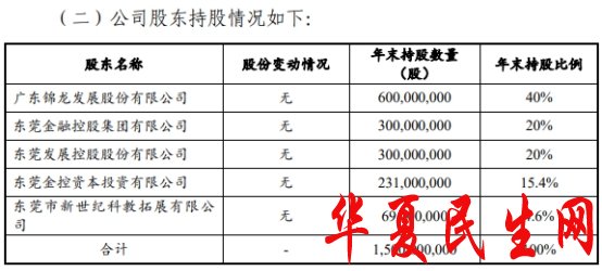 东莞证券2019年年度报告公开披露信息显示,第一大股东为广东锦龙发展股份有限公司(简称“锦龙股份”,股票代码000712),持股比例40%。其余股东分别为东莞金融控股集团有限公司、东莞发展控股股份有限公司、东莞金控资本投资有限公司、东莞市新世纪科教拓展有限公司。