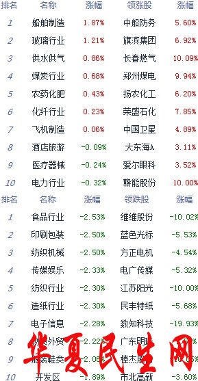 A股市场板块及个股涨跌幅排行