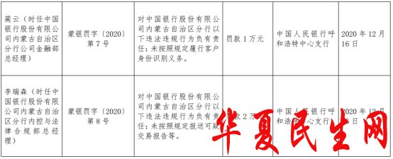 中国银行内蒙古分行5宗违规遭罚76万 虚报瞒报资料