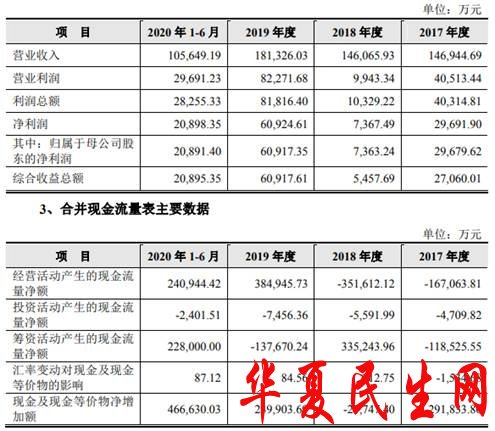 2016年、2017年、2018年、2019年和2020年1-6月,公司经营活动产生的现金流量净额分别为-450,999.05万元、-167,063.81万元、-351,612.12万元、384,945.73万元和240,944.42万元。