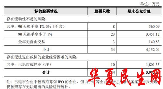 2016年、2017年、2018年、2019年和2020年1-6月,财达证券权益类自营业务的投资收益率分别为为-12.72%、-10.89%、-13.73%、10.84%和9.31%,固定收益类自营业务的投资收益率分别为9.28%、2.82%、11.42%、9.60%和5.21%。截至2020年6月30日,财达证券共持有49家新三板公司股权(包括正在提供做市服务以及已退出提供做市服务),其中有44只新三板股票存在流动性不足、无法退出或标的企业经营困难的风险。