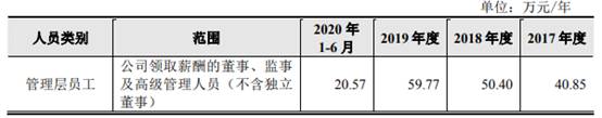 2016年至2020年上半年,财达证券的董监高薪酬合计896.78万元、554.23万元、734.24万元、835.50万元和281.71万元,管理层员工(公司领取薪酬的董事、监事及高级管理人员)人均薪酬44.84万元、40.85万元、50.40万元、59.77万元和20.57万元。
