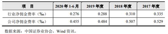 2016年至2020年上半年,行业净佣金费率分别为0.379‰、0.335‰、0.310‰、0.288‰和0.276‰,财达证券的净佣金费率分别为0.579‰、0.529‰、0.507‰、0.484‰和0.455‰,整体同样呈下降趋势。