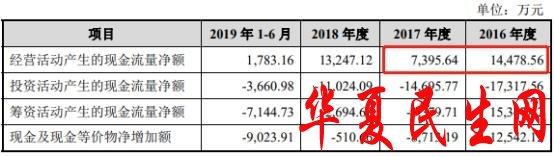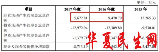 舒华体育2019年报送的2版招股书则显示,2016年、2017年舒华体育经营活动产生的现金流量净额分别为14478.56万元和7395.64万元,分别与2018年版相差5007.77万、1722.83万元。