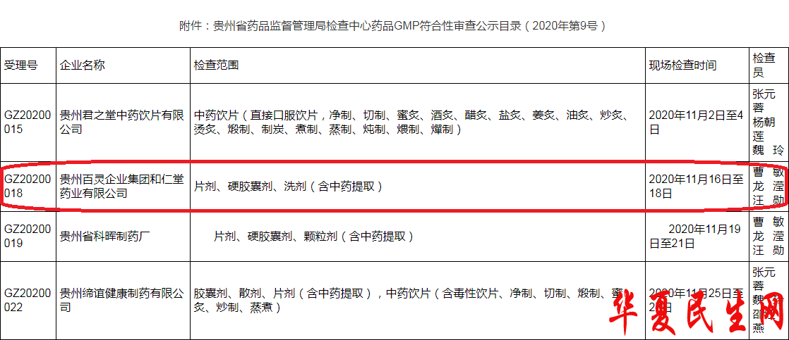 上述检查结果显示,根据原国家食品药品监督管理局《药品生产质量管理规范认证管理办法》和《关于印发药品生产质量管理规范认证管理办法的通知》(国食药监安[2011]365号)的规定,经现场检查和审核,贵州缔谊健康制药有限公司、贵州君之堂中药饮片有限公司、贵州省科晖制药厂、贵州百灵企业集团和仁堂药业有限公司(硬胶囊剂、洗剂(含中药提取))符合《药品生产质量管理规范》(2010年修订)。