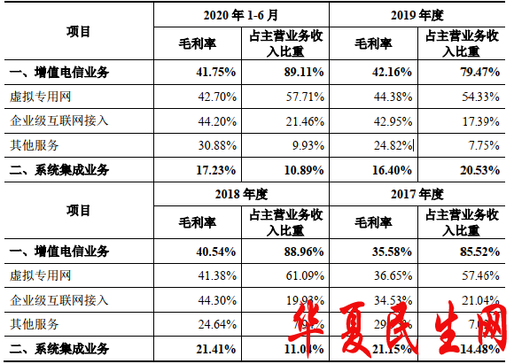 据招股书,与增值电信类业务相比,系统集成业务项目周期较长,涉及硬件设备采购、需安排人员在现场进行安装、调试等,材料成本及服务采购成本较高,毛利率较低,拉低了公司整体毛利率。