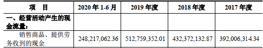 同期,南凌科技经营活动产生的现金流量净额分别为2569.86万元、6506.16万元、7177.74万元、4386.16万元,其中,销售商品、提供劳务收到的现金分别为3.92亿元、4.32亿元、5.13亿元、2.48亿元。