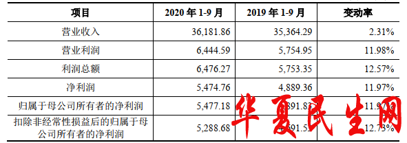 2020年1-9月,南凌科技实现营业收入3.62亿元,同比增加2.31%;归属于母公司股东的净利润5477.18万元,同比增加11.97%;扣除非经常性损益后归属于母公司所有者的净利润5288.68万元,同比增加12.73%;经营活动产生的现金流量净额7425.58万元,同比增加99.90%。