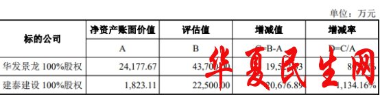8、报告书显示,本次评估采用了资产基础法和收益法两种方法,并以收益法评估结果作为最终评估结论。其中,收益法下,华发景龙100%股权增值率为80.75%,建泰建设100%股权的增值率为1,134.16%。此外,标的公司的主要资质将于2021年12月31日到期,且预测期内费用率占比远低于同行业公司。