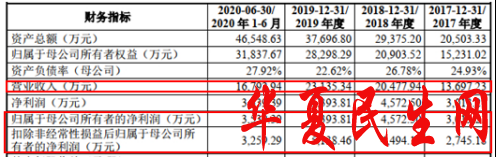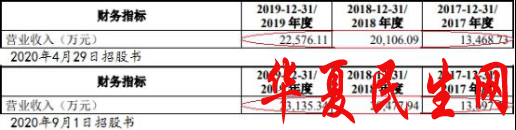 2020年4月29日招股书显示,2017年至2019年营业收入分别为1.35亿元、2.01亿元、2.26亿元;2020年9月1日招股书显示,2017年至2019年营业收入分别为1.37亿元、2.05亿元、2.31亿元。