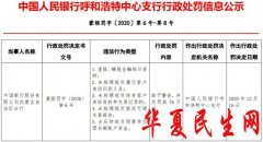 中国经济网北京12月23日讯央行网站昨日发布中国人民银行呼和浩特中心支行行政处罚信息(蒙银罚字[2020]第6号-第8号),中国银行内蒙古自治区分行存在虚报、瞒报金融统计资料;未按...