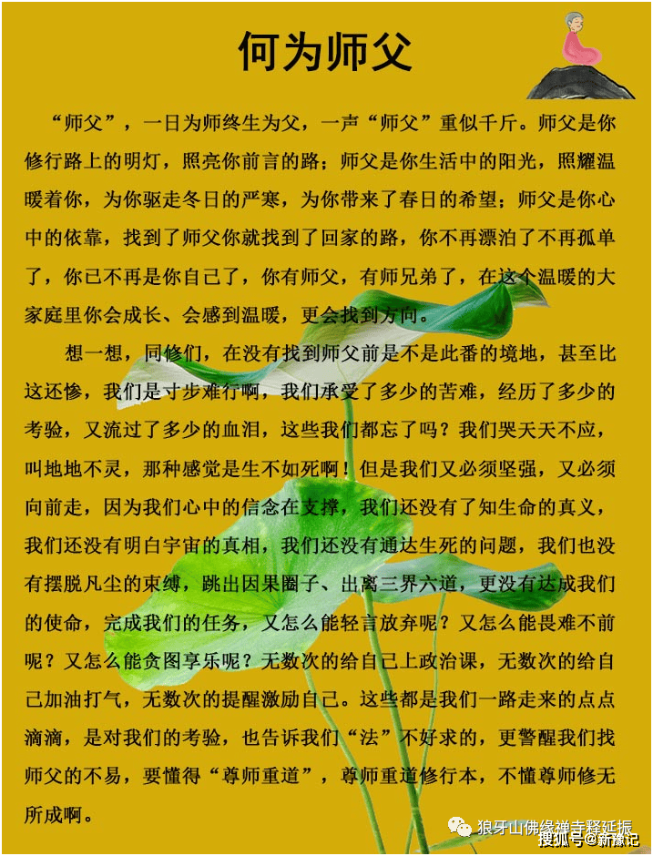 古语云“师徒如父子,一日为师,终身为父”,父母给予我们生命,老师给予我们慧命,如果您决定拜师,请细读下面对师父的略解,拜师也要顺其一“缘”字。不见得所有报名学员都能拜释延振师傅为师,师傅也要有所选拔,是否具有感恩之心,是否懂得尊师重道········