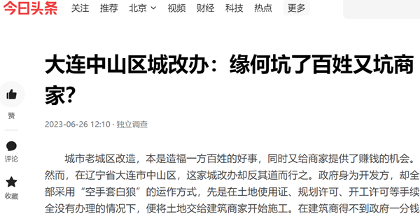 此工程从开工到现在已过去十年。接到市民投诉,记者于近日亲赴大连,对此事展开详细调查采访,意在揭开这城改办将此工程弄到今天这个地步的真正原因,但调查结果只能用“触目惊心”四个字来形容。
