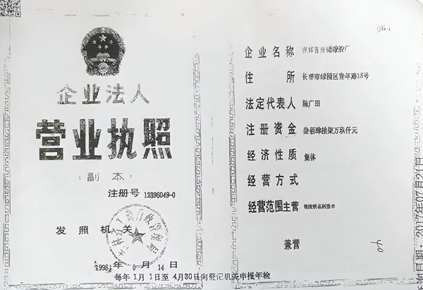 1988年7月1日第一部《中华人民共和国企业法人登记管理条例》出台;1994年7月1日《中华人民共和国公司法》正式实施;1989年2月25日,吉林省吉储橡胶厂成立(原长春市橡胶制品二厂),工商信息显示企业类型:集体所有制。营业期限自1989年2月25日至2050年12月31日。在吉林省吉储橡胶厂成立之后公司法才出台。