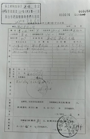 在提交给有关部门的一份书面反映材料中,李先生陈述了事情经过:我叫李某林,男,汉族,出生于1960年2月,江苏省东台市梁垛镇梁垛村人。我于1979年10月在当地镇办企业建筑公司参加工作。一份现存的、加盖梁垛镇政府公章的《东台市梁垛镇企业职工参加养老保险人员花名册》显示:本人工作单位名称:梁垛镇第二建筑公司;户口性质:城镇;工作时间:1980年12月1日;养老时间:1992年1月1日;用工性质:合同制。