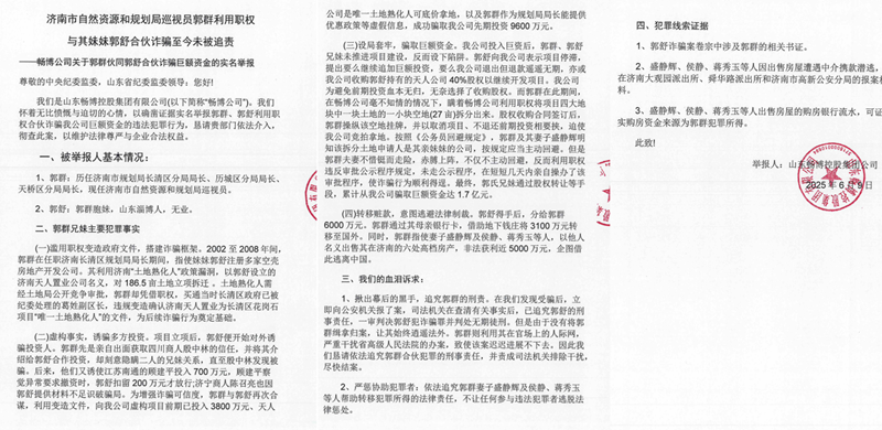 济南市自然资源和规划局巡视员郭群利用职权与其妹妹郭舒合伙诈骗至今未被追责 畅博公司关...