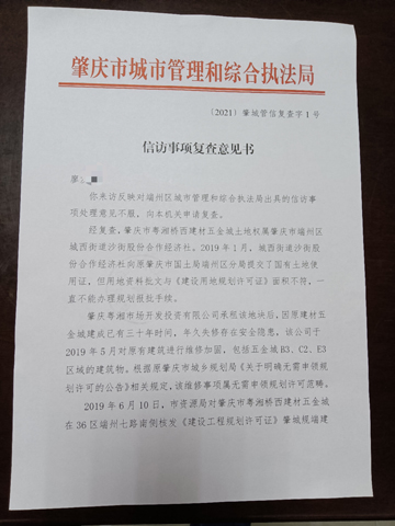 全面推进依法治国,必须坚持公正司法。要依法公正对待人民群众的诉求,努力让人民群众在每一个司法案件中都能感受到公平正义,决不能让不公正的审判伤害人民群众感情、损害人民群众权益。“市场开发建设方擅自更改规划,停车位和绿化带变成了商铺,且没有路口,没有沥青路面,严重影响了我们的正常经营,给我们造成了很大的经济损失。”近日,在广东省肇庆市(端州区)粤湘桥西建材五金城经商的王先生致函有关部门反映说。