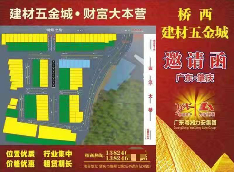 2019年6月底,众商户接到肇庆市粤湘市场开发有限公司邀请函招商,在粤湘桥西建材五金城市场承租了一个商铺。事情由此开始,因为我们看到了现场没有像邀请函的规划图一样,没有路口,没有沥青路面,我们感到无法接受。