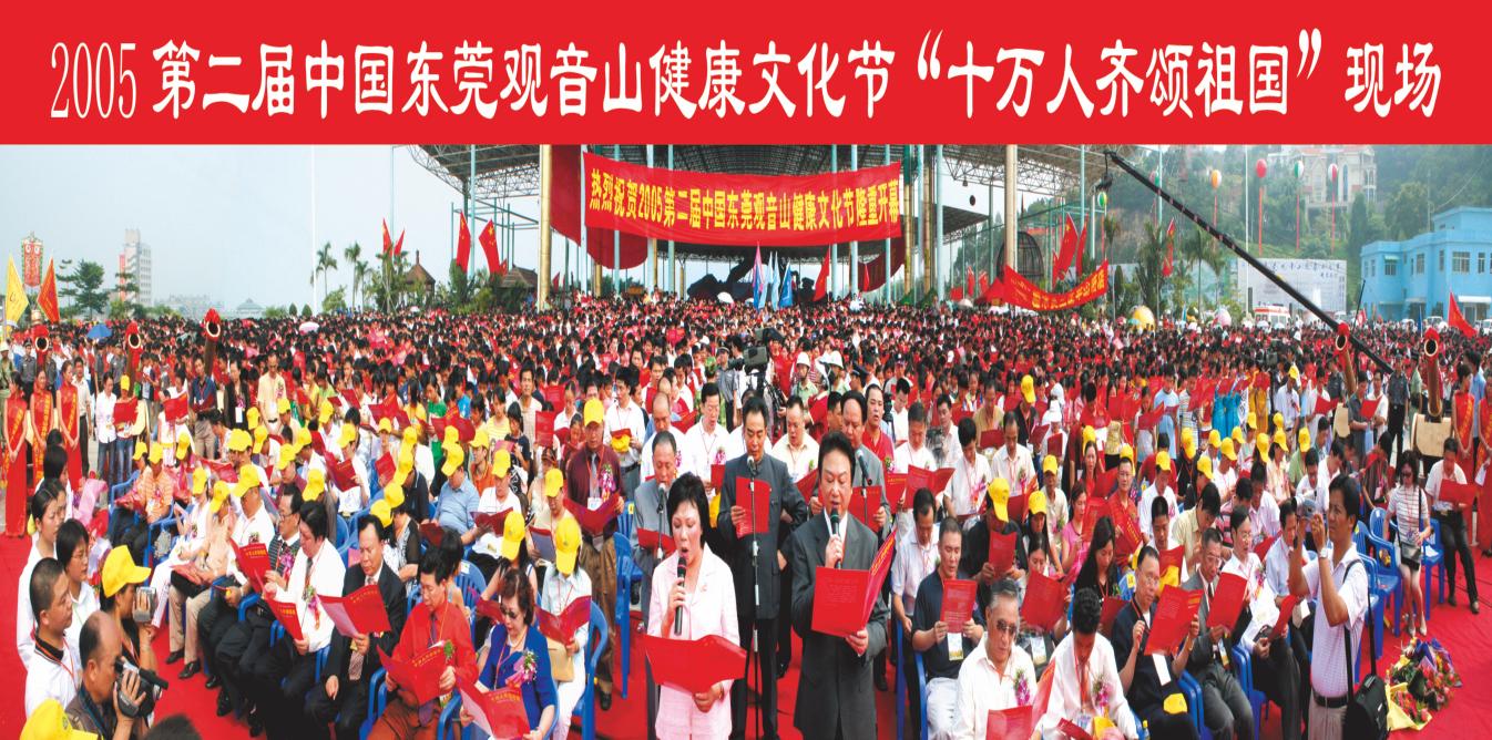 “十万人齐颂祖国”活动由中国老年保健协会主办,国家新闻出版总署报刊服务中心、中国老龄事业发展基金会、樟木头镇人民政府、东莞市旅游协会等协办,东莞市观音山森林公园承办,全国人大副委员长许嘉璐和国家卫生部原部长钱信忠担任此次活动的组委会名誉主任。