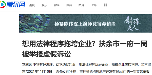 本站讯 不管有理没理,动不动就起诉、用法律程序玩弄企业,搞得企业应接不暇、苦不堪言?2021年11月10日,德卡公司(全称:吉林省德卡房地产开发有限公司)的一封实名举报信令记者感到十分震惊。这封举报信称:“由于政府的不作为,才导致华夏区块棚改回迁户十五年都不能回迁,我公司根本就没有违约,扶余市政府却起诉我们根本违约,企图用这种手段推卸责任。同时,我公司也并不拖欠自然资源局的土地出让金和滞纳金,该局只是为了无限期拖延给付政府欠钱才提起诉讼。这两起诉讼都构成虚假诉讼!其目的是想用法律程序拖垮企业!由于遭遇政府的严重违约和司法腐败的双重、接连不断的打击,我公司已经濒临破产,我们强烈要求上级政府和纪检、监察部门为企业做主!”
