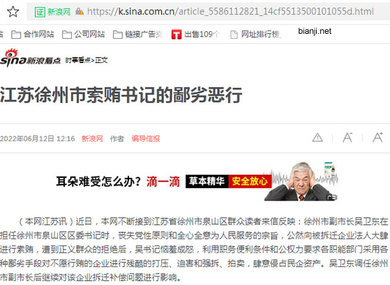江苏徐州市索贿 书 记的 鄙 劣恶行
