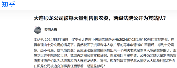大连殿龙公司被爆大量制售假农资,两级法院公开为其站队?