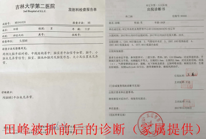 张立伟还向媒体介绍:此案明显是受到了人为因素的干扰,她已经多次向上级纪检、监察、督察部门反映个别人操控司法打击报复的问题。其丈夫田峰进入看守所时还是个健康人,仅仅在里面呆了六个月多,出来后就成了植物人状态。我们有住院病历诊断证明,头部CT影像图、扫描等为证。我丈夫至今没有任何好转的迹象,我作为他的妻子,一定要替他、也替自己伸冤到底!