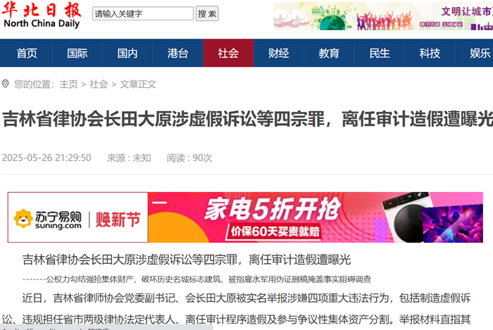吉林律协会长田大原涉虚假诉讼等四宗罪,离任审计造假被曝光后至今未受处罚