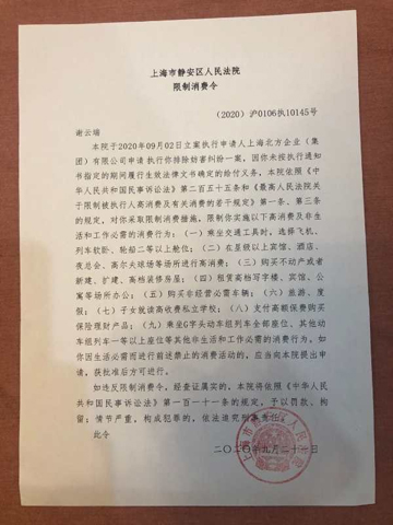 本以为事情可以就这样发展下去,会尽快解决,大家都可以相安无事。然而,之后被上诉人北方集团却声称上诉人谢云端非法占用了洛川东路161号7层的房屋,认为没有证据证明该房屋由谢云端长期无偿使用,这样一个违背事实的错误裁判,严重伤害了上诉人的感情,也深刻影响了她的生活。2018年4月12日,静安区法院下发执行裁定书,要求上诉人谢云端搬离洛川东路161号7楼房屋,并将房屋返还给申请执行人,但坚信有理的谢云端却并未执行这样的裁定。2019年7月26日,上诉人谢云端以书面形式再次向法院陈述了整个事件经过,并再次表态愿意大家坐下来协商解决此事,但却沟通无果。后于2020年9月2日,法院又对谢云端采取了限制消费措施,对其实施了诸多高消费以及非生活和工作必需消费的限制,包括乘坐交通工具时,不得选择飞机、列车软卧和轮船二等以上舱位;不得在星级以上宾馆、酒店等场所进行高消费。