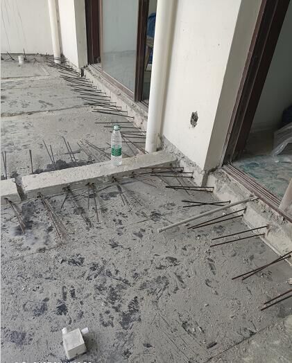 白金海岸二期阳台二次浇筑植筋施工现场照片