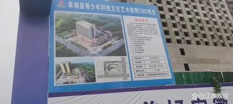 在青少年CBD大楼工地门口的公示牌上看到,该项目由安徽省科学家企业家协会计划投资1,8亿元,总面积为22333平方米,协会自持不低于百分之四十。