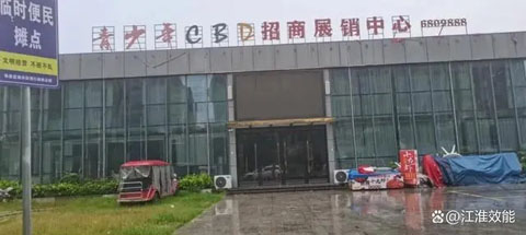 在阜南县青少年CBD招商展销中心看到,展销中心门前的广场已经设成“临时便民摊点”,一位卖小吃的大姐告知,展销中心的工作人员没上班,指着在建的CBD大楼说,这楼已经停了好久了。