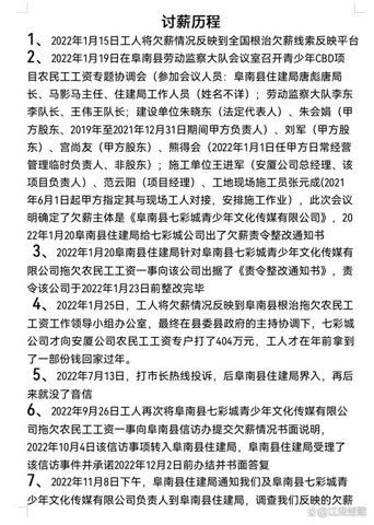2021年6月份到2022年1月份,阜南县阜南七彩城青少年文化传媒有限公司拖欠农民工工资200多万。