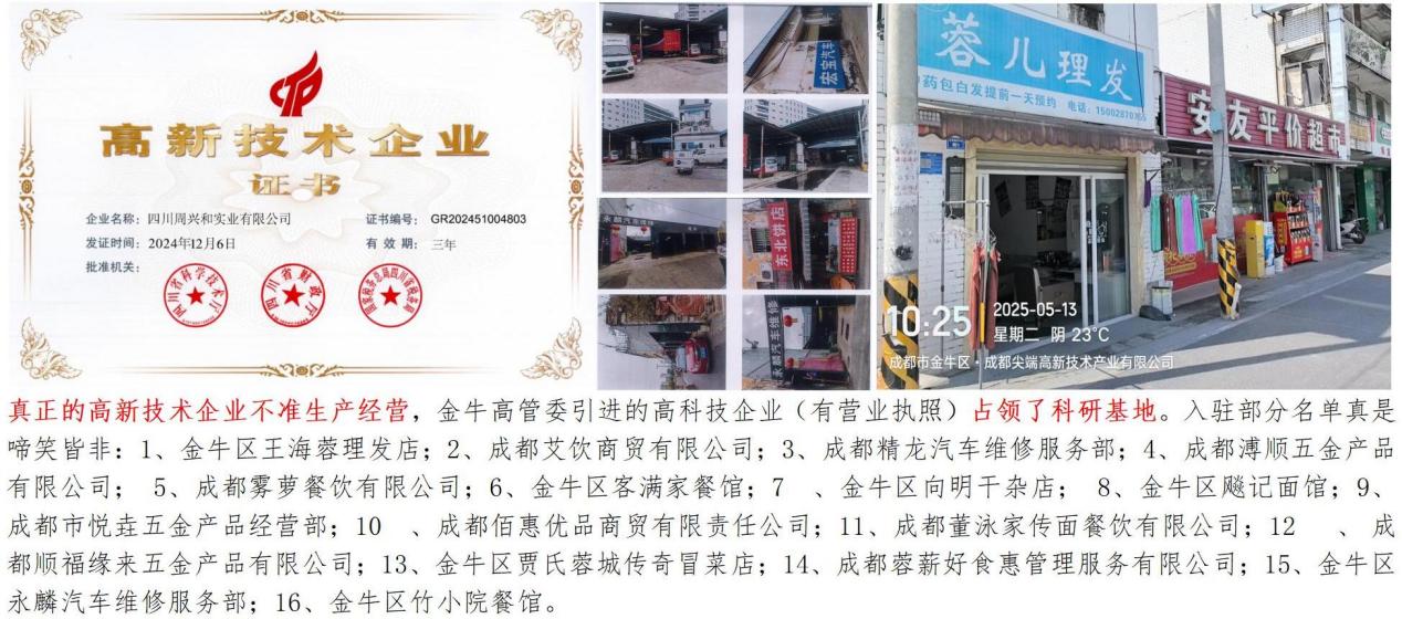 金牛区政府、金牛高管委招商引进的‘高新企业’实为30余家理发店、餐饮店等低端商户,均与高新技术产业无关