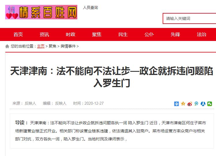 近日,天津市津南区何庄子菜市场新建营业楼正式开业。相关部门称该营业楼系违建,依法清退其入驻商户。菜市场运营方率众商户与相关部门对抗,双方各执一词,陷入“罗生门”。当地村民及律师表示,支持政府依法执法,“法不能向不法让步”。