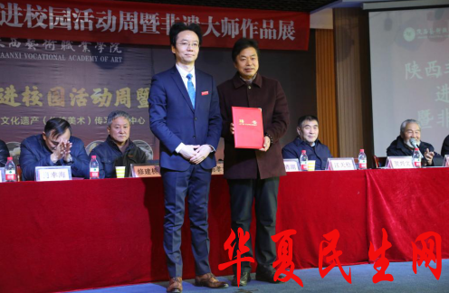 陕西艺术职业学院为中国工艺美术大师、国家级非物质文化遗产项目(麦秆画)代表性传承人贺兴文颁发聘书