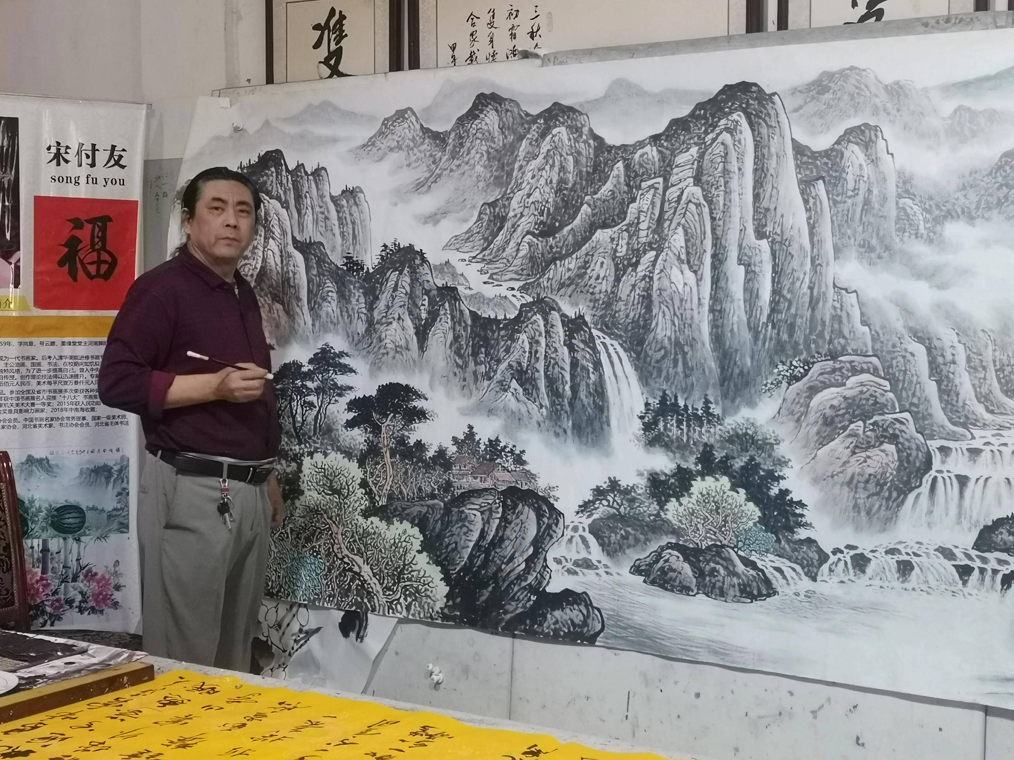 宋付友先生自幼酷爱书法,勤奋好学,虚心求教,成为一代书画家。后来考入清华美院进修书画专业,系统学习研究书画理论和技法,同时兼修国学。主攻油画、国画、书法,在校期间如饥似渴涉取。从而打下了坚实的基础,并逐渐形成了自己的独特风格,为了进一步提高自己,曾入中央美术学院进修两年。主攻花鸟山水,得到知名画家亲自传授。创作理论技法得以迅速提升。专家评审委员会对其书画作品的润格评估价值很高···。