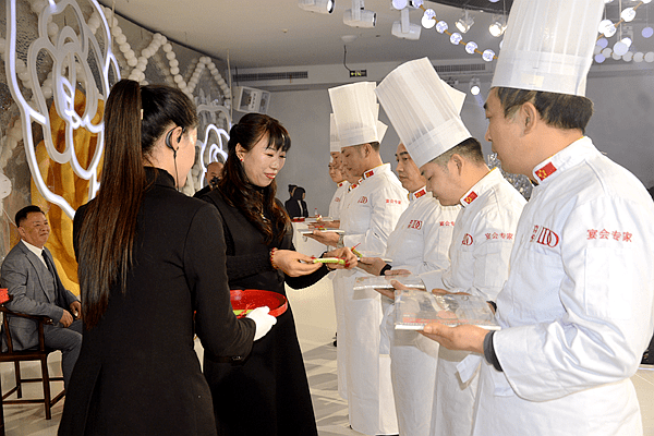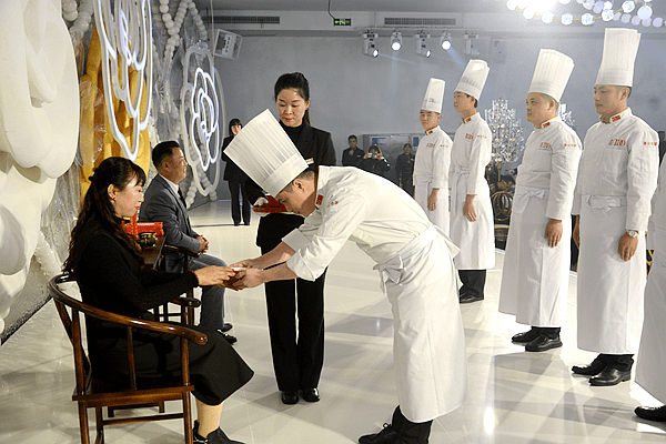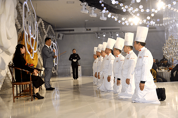 18:30分,张伟的恩师、重庆市餐饮行业协会会长、喜悦酒店董事长张济东在喜纳新徒致辞中说,拜师是中国的传统文化,八名弟子要以“德为先”——高尚的道德是为人的标准;“勤为本”——勤劳是做人的根本;“和为贵”——能与人和睦相处最为可贵;“学为善”凡事都要虚心学习。希望师徒相互帮助,相互成就,共同提高厨艺。