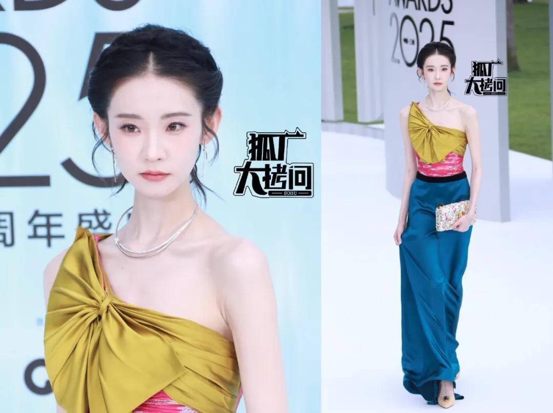 张艺凡这条三色长裙有点难懂,金色、玫红色、深蓝色是能搭配得好看的配色吗?如今的她看着有些过瘦了,手臂之纤细仿佛没吃过饱饭,已经偏离健康的审美了。