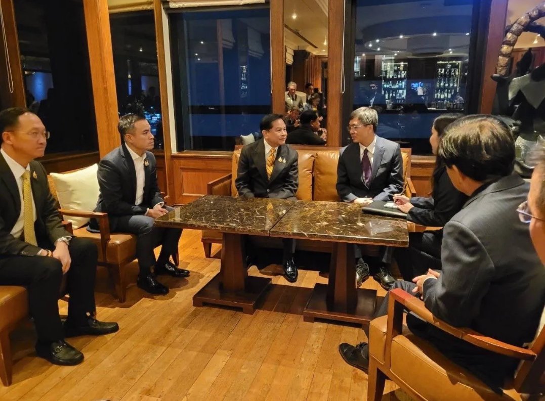 值此泰中两国建交50周年之际,泰国副总理兼能源部长、统一泰国建国党领袖披拉攀、工业部长、统一泰国建国党秘书奕卡纳等官员,与青海省委书记陈刚带领的中国共产党中央委员会以及中国驻泰国大使韩志强进行会面。