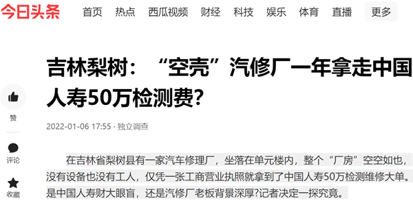 在吉林省梨树县有一家汽车修理厂,坐落在单元楼内,整个“厂房”空空如也,没有设备也没有工人,仅凭一张工商营业执照就拿到了中国人寿50万检测维修大单。是中国人寿财大眼盲,还是汽修厂老板背景深厚?记者决定一探究竟。