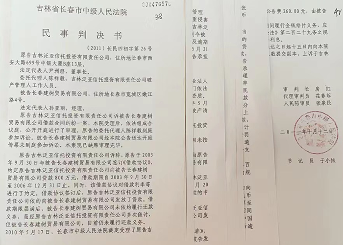 关于长春财鑫及长春建树虚假诉讼案件,范日旭认为泛亚信托破产管理人明知没有借款事实,没有银行转账凭证,且在公司实际控制人反复说明事实的情况下,仍然恶意提起诉讼,干扰司法秩序,损害被告人合法权益。长春建树的案子案号为:2011长民四字第26号,长春财鑫的案子案号为 (2013)吉民二终字第90号,两个案子都是破产管理人在整理档案时发现两张记账凭证,当时这几家企业我都是实际控制人,根本不存在相互借款的情况,破产管理人发现的记账凭证是当时为了平账需要做的,根本没有借款事实及银行转账。