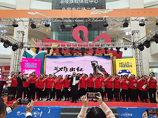 五个店的店长以“抓阄”的顺序,分别进行了团队的士气展示,士气展示环节让大家相信会用结果来证实各团队能圆满完成本次任务的决心和信心。