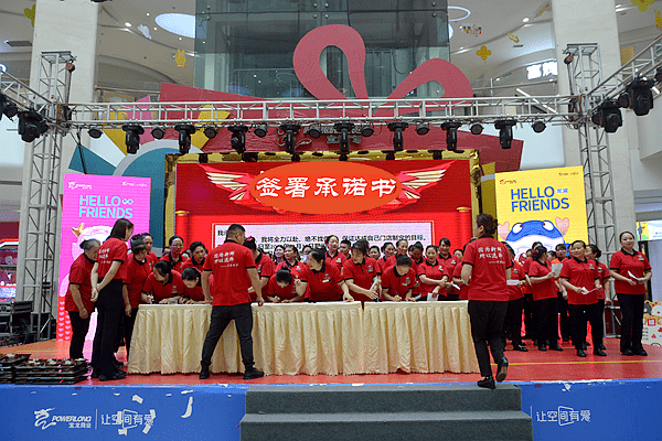 各店店长率员工们签署“将全力以赴,绝不找借口,保证达成自己门店指定的目标任务”的《承诺书》。