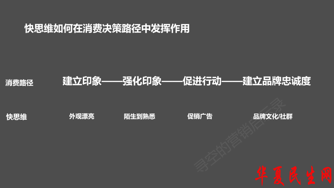 一般来讲,传统广告不大可能直接促销消费者实现瞬间购买行为,如上文所述,它的作用是逐渐营销消费的快思维。