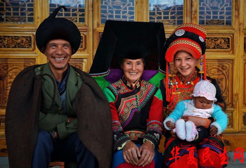 马登镇江南村后山彝族同胞在新居前拍摄全家福