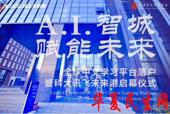 致辞结束后,现场举行了全球中文学习平台落户暨科大讯飞未来港启幕仪式,田学军副部长、王清宪书记、邓云锋厅长、周安主任、赵士玉副书记、刘庆峰董事长等领导及嘉宾上台启幕。
