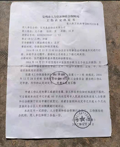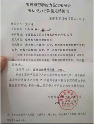 “我在陕西省宝鸡市宝鸡惠昌铸业有限公司上班期间,发生一起工伤事故,经鉴定为9级工伤。法院判决被告方支付本人工资补偿金等184549元,但时过多年,被告方仍不履行判决书确定的义务,损害了我的合法权益。”近日,甘肃省成县籍农民工支小涛致函有关部门反映说。