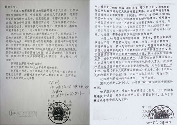 (2017)吉0104民初1号离婚案 (2019)吉01民终817号上诉案 原告:邢德坤